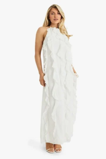 BOOHOO Chiffon Halterneck Ruffle Maxi Dress