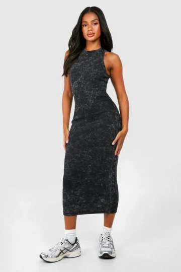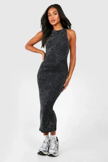 BOOHOO Acid Wash Racer Neck Bodycon Maxi Dress