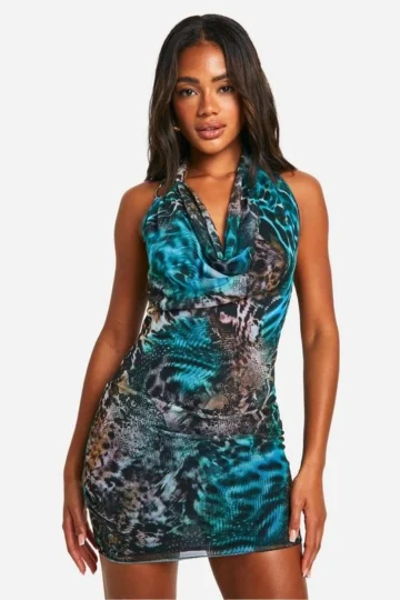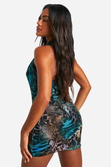 BOOHOO Animal Mesh O Ring Mini Dress