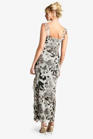 BOOHOO Animal Mix Mesh Ruffle Maxi Dress