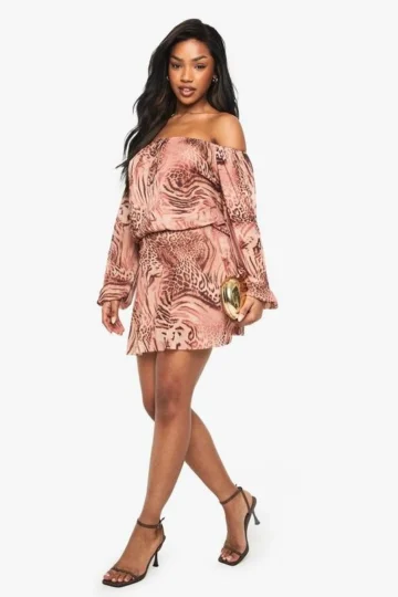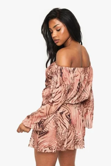 BOOHOO Animal Mesh Blouson Mini Dress