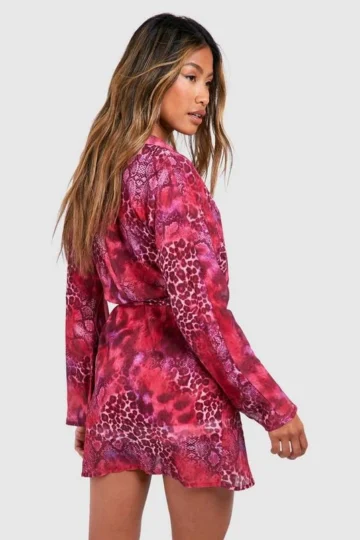 BOOHOO Animal Print Wrap Mini Dress