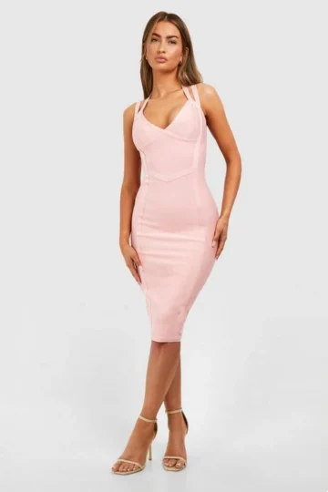 BOOHOO Bandage Double Strap Midi Dress