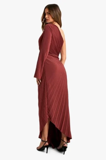 BOOHOO Asymmetric Pleated Plisse Midi Dress