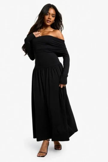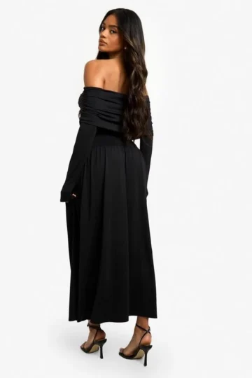 BOOHOO Bandeau Long Sleeve Drop Waist Skater Dress