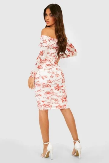 BOOHOO Baroque Mesh Off The Shoulder Midi Dress