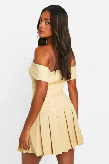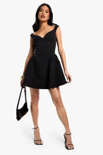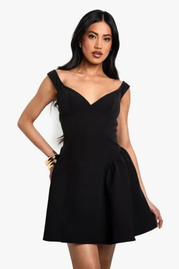 BOOHOO Bardot Structured Volume Skater Mini Dress
