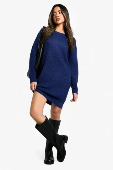 BOOHOO Basic Crew Neck Knit Mini Jumper Dress