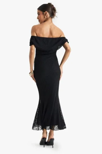 BOOHOO Bardot Lace Pleated Midaxi Dress