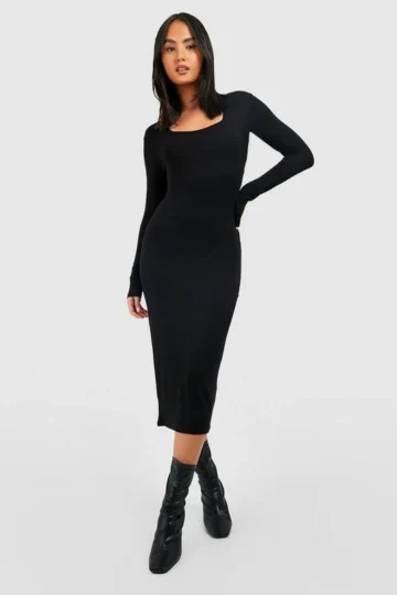 BOOHOO Basic Square Neck Bodycon Midi Dress