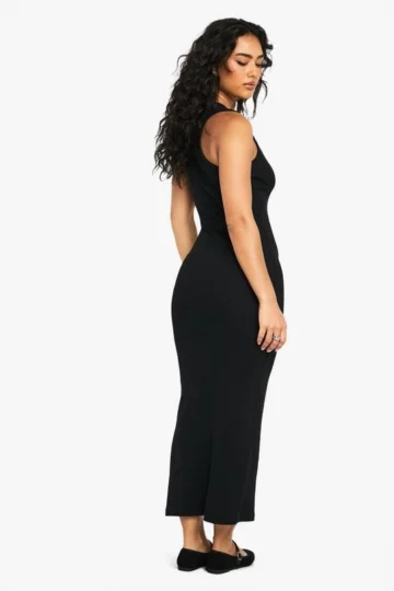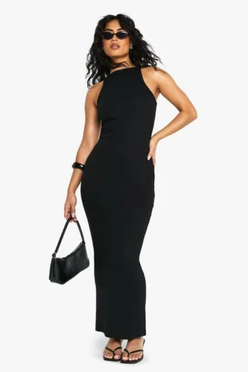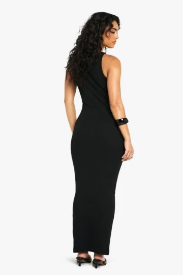 BOOHOO Basic Rib Racer Neck Maxi Dress