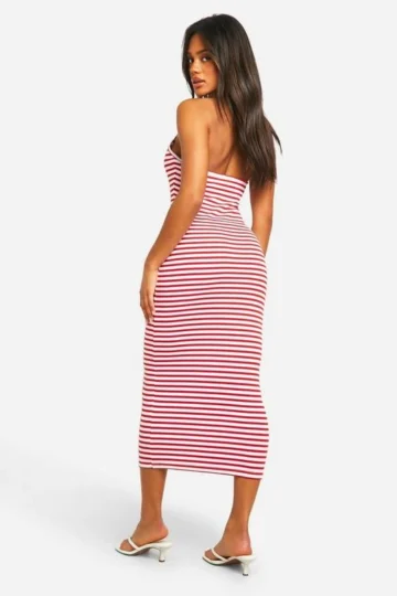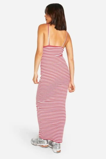 BOOHOO Basic Rib Stripe Square Neck Maxi