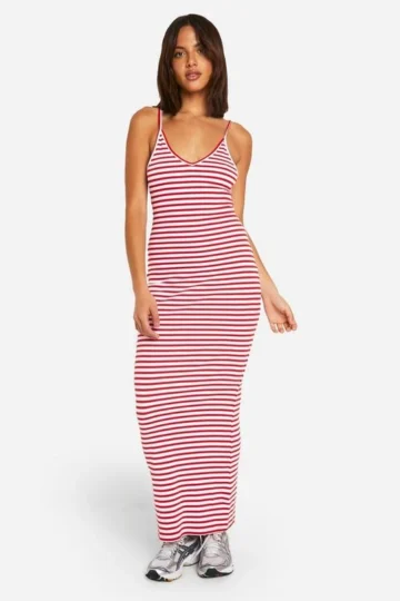 BOOHOO Basic Stripe Rib Racer Neck Maxi
