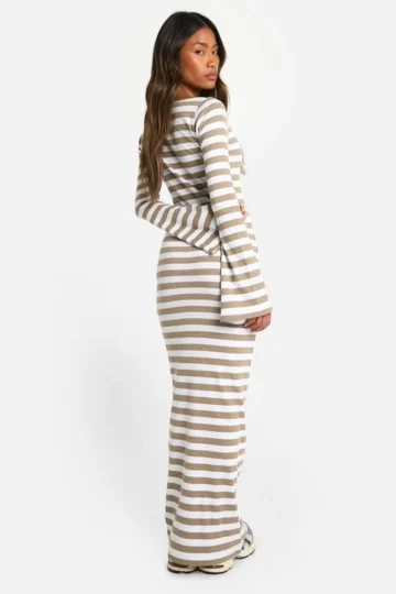 BOOHOO Basic Stripe Rib Notch Maxi Dress