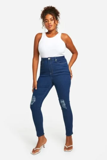 BOOHOO Plus High Waisted Distressed Skinny Jeans