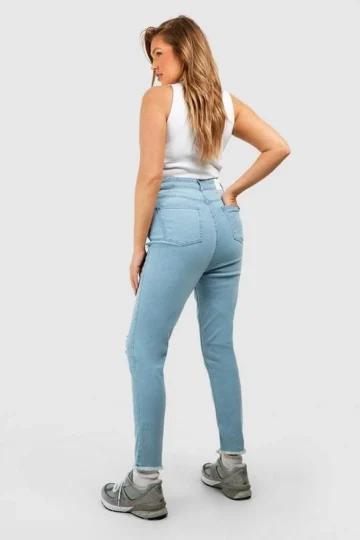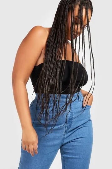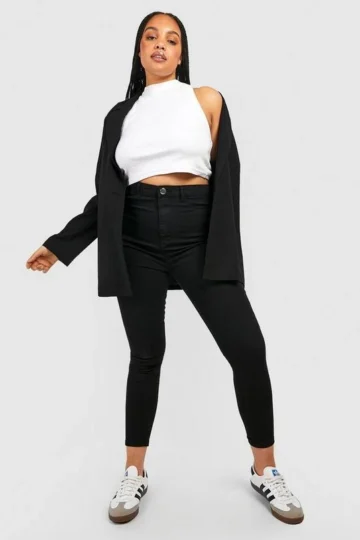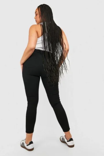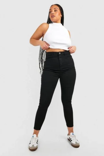 BOOHOO Plus High Waisted Raw Hem Ripped Skinny Jeans