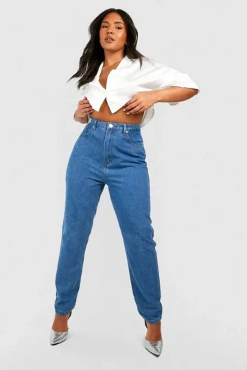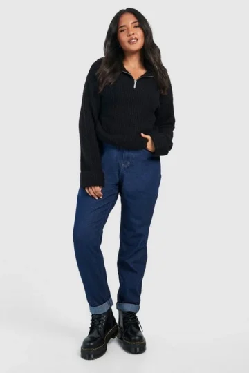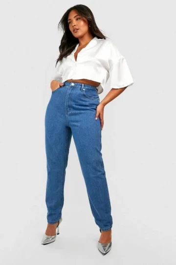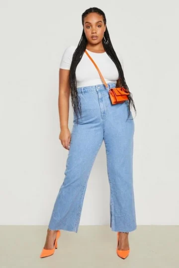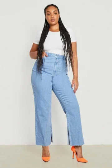 BOOHOO Plus High Waisted Split Hem Straight Jeans