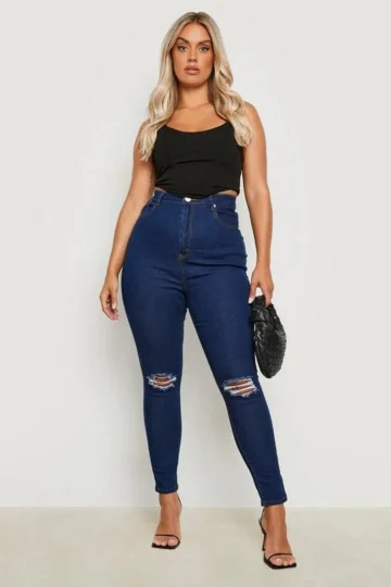 BOOHOO Plus Rip Knee Distressed High Waisted Skinny Jeans