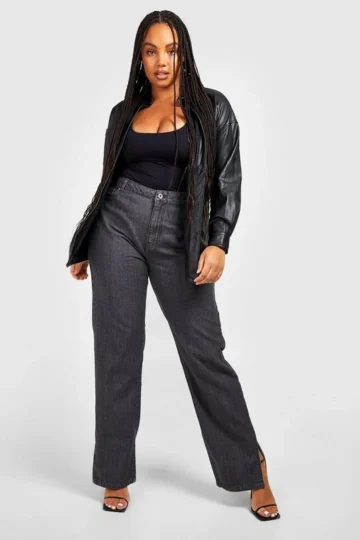 BOOHOO Plus Split Hem Straight Leg Jeans