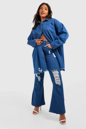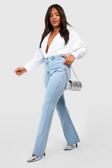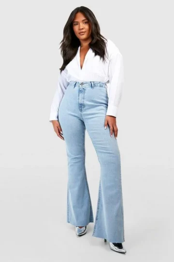 BOOHOO Plus Raw Hem Flared Denim Jeans
