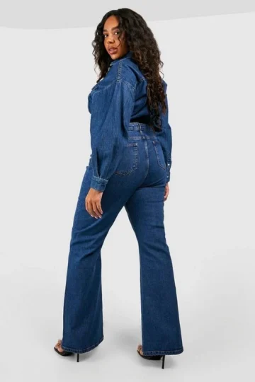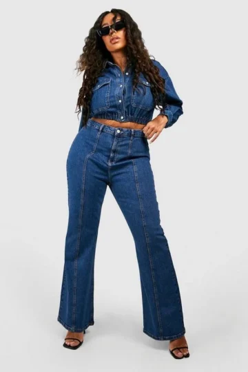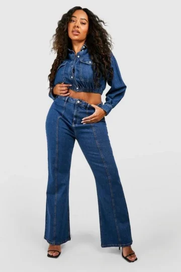 BOOHOO Plus Mid Rise Seam Detail Flared Jean