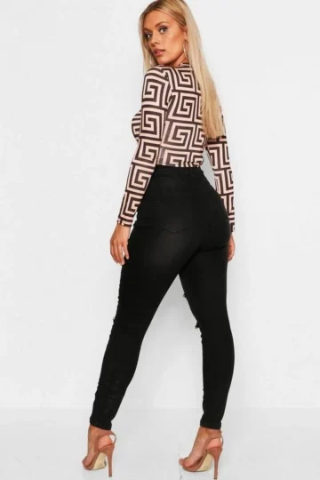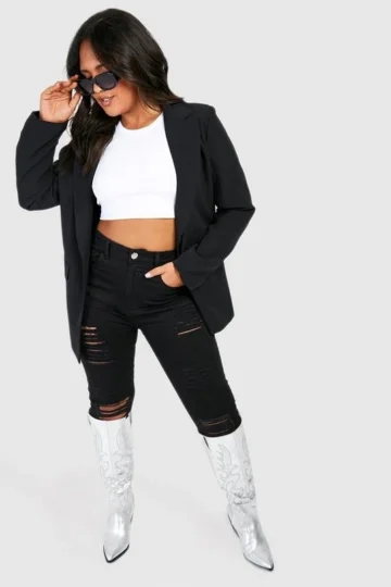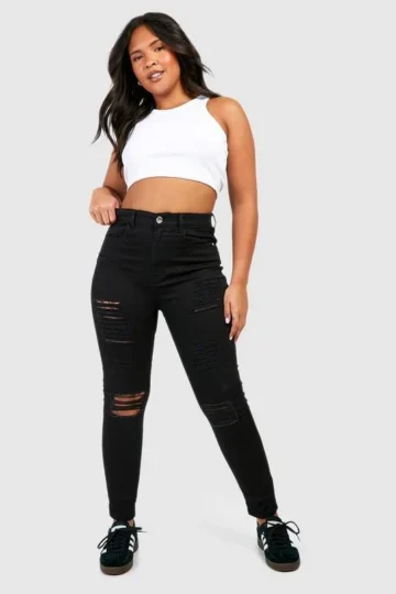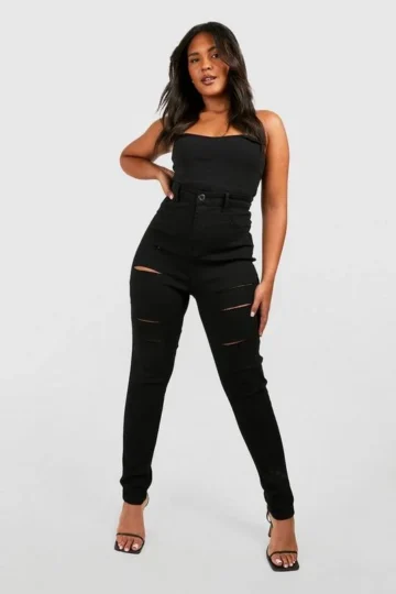 BOOHOO Plus Super Distressed High Waist Skinny Jeans