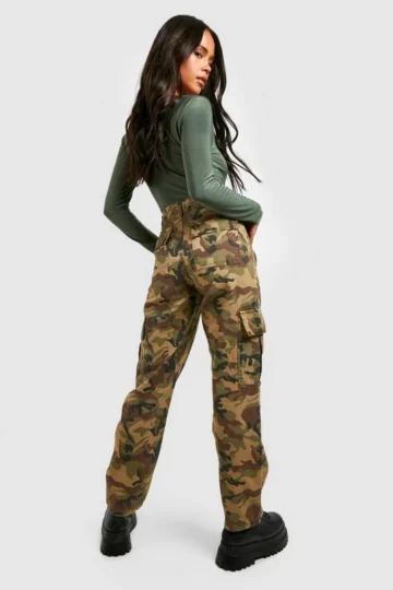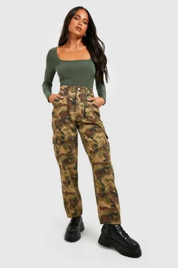 BOOHOO Petite Camo Print Loose Cargo Jeans