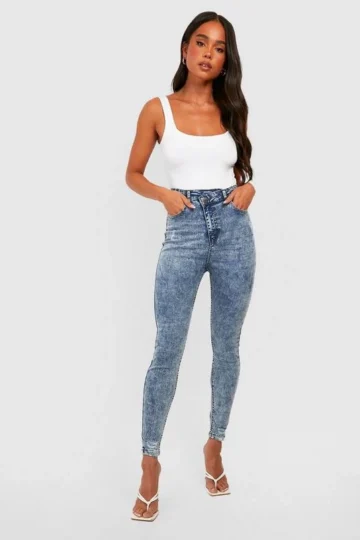 BOOHOO Petite Asymmetric Waist Detail Skinny Jeans