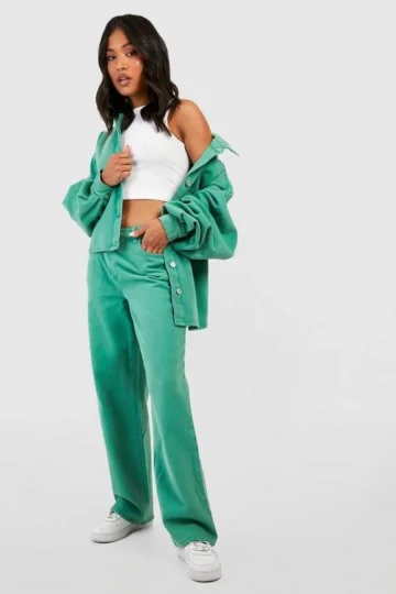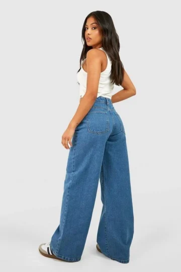 BOOHOO Petite Denim Asymmetric Waist Detail Straight Leg Jeans