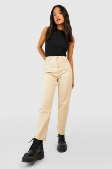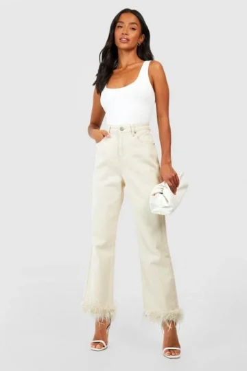 BOOHOO Petite High Waist Feather Hem Straight Leg Jeans