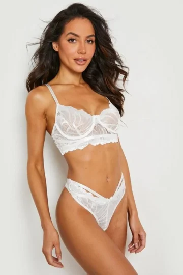 BOOHOO Honeymoon Lace Bralette And Thong Set