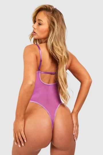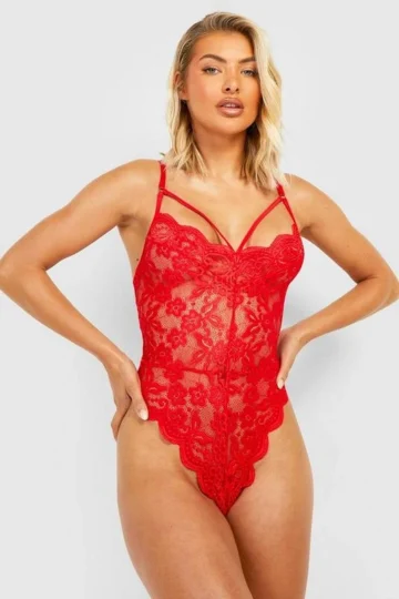 BOOHOO Lace Up Crotchless Bodysuit
