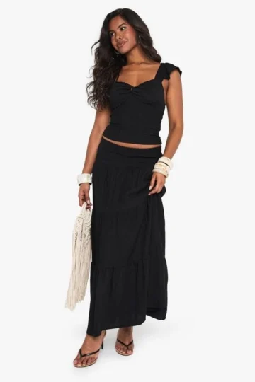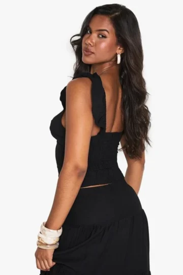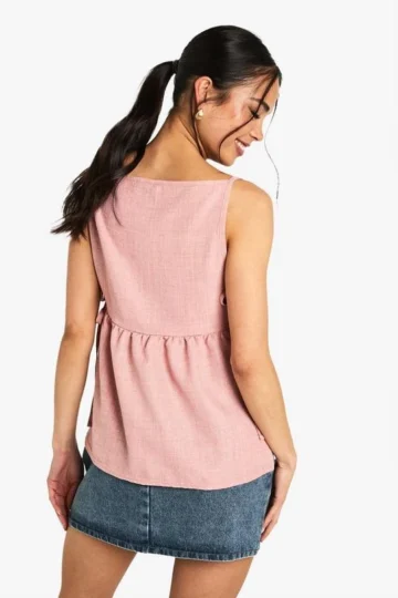 BOOHOO Linen Look Strappy Smock Top