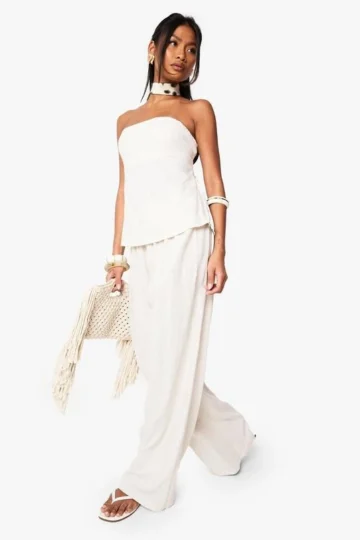 BOOHOO Linen Look Slouchy Wide Leg Trouser