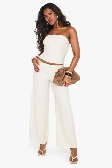 BOOHOO Linen Look Wide Leg Trousers