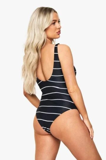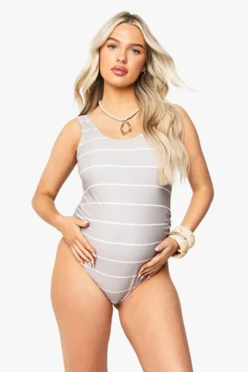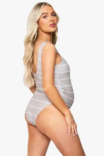 BOOHOO Maternity Stripe Scoop Neck Swimsuit