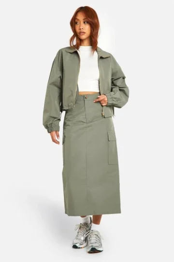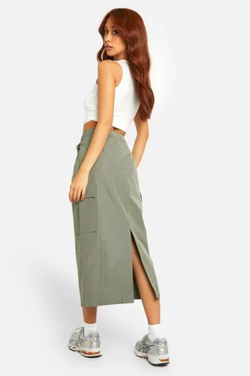 BOOHOO Nylon Cargo Column Midi Skirt