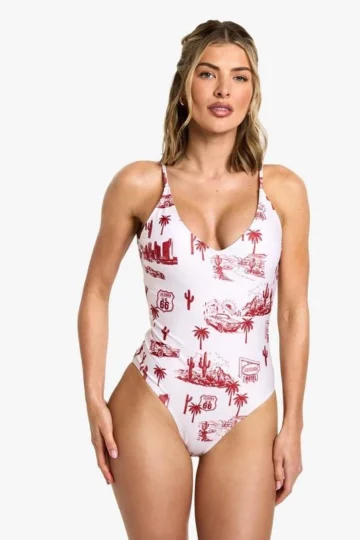 BOOHOO Motel Print Swimsuit
