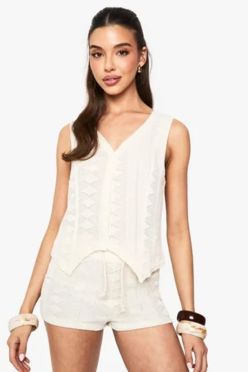 BOOHOO Mix And Match Textured Patterned Knitted Waistcoat