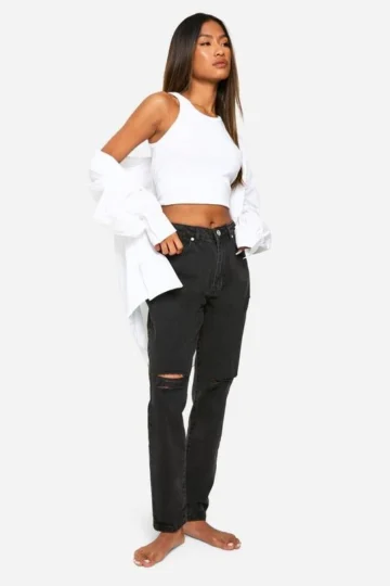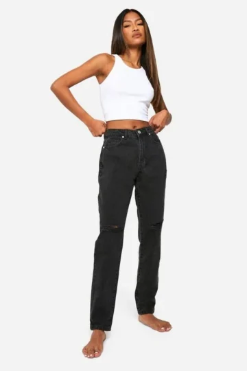 Boohoo Basics 32 Inch Leg High Waisted Ripped Mom Jeans