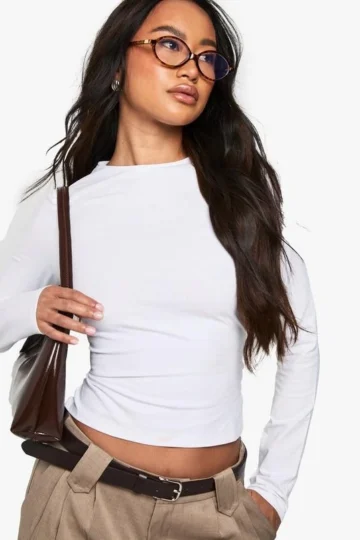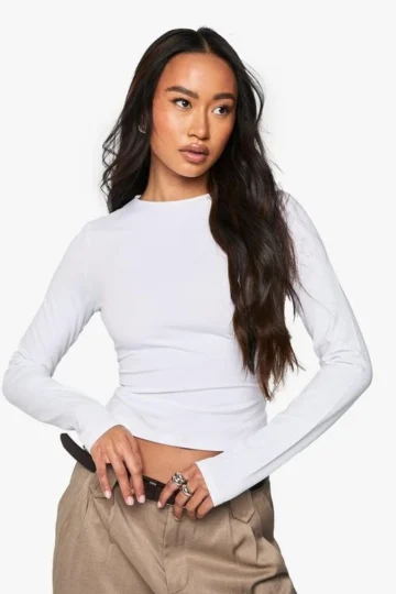 Boohoo Basics Long Sleeve Crew Neck Crop Top