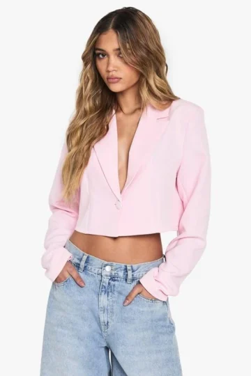 BOOHOO Basic Woven Relaxed Fit Crop Blazer