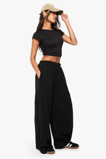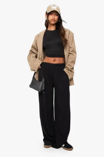 BOOHOO BASICS RIB STRAIGHT LEG TROUSER