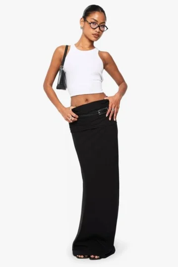 BOOHOO BASICS FOLD OVER WAISTBAND MAXI SKIRT