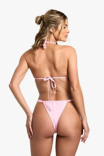 BOOHOO Pearl Trim Triangle Bikini Top & Tanga Bikini Bottoms Set