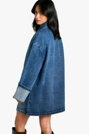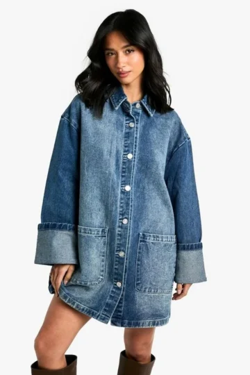 BOOHOO Petite Utility Turn Cuff Denim Oversized Shirt Dress