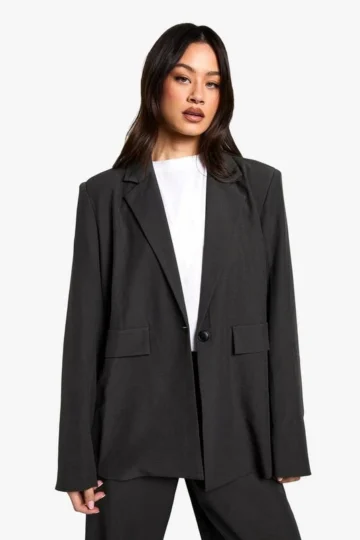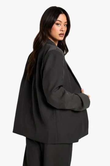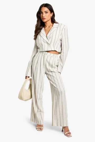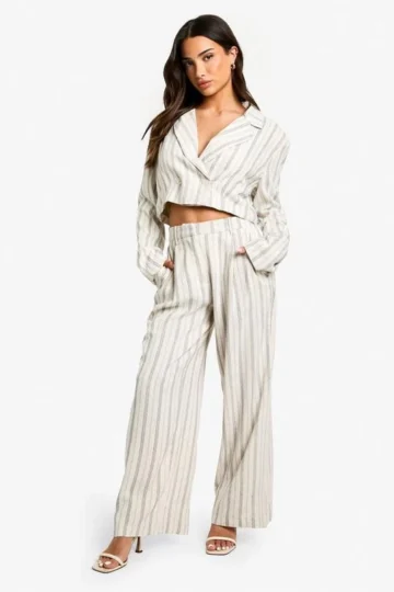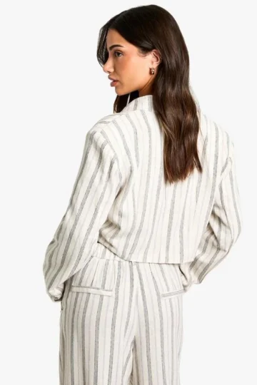 BOOHOO Petite Stripe Linen Look Cropped Blazer