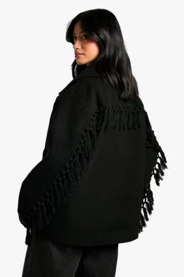 BOOHOO Petite Tassel Detail Wool Look Jacket