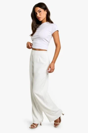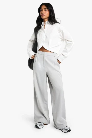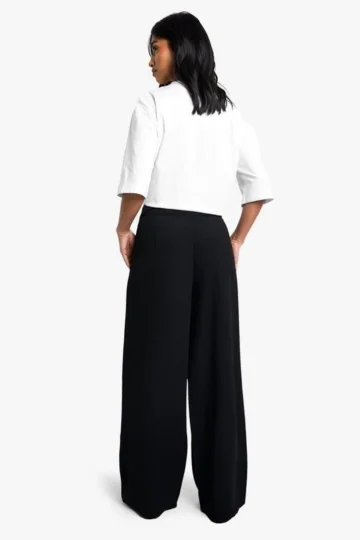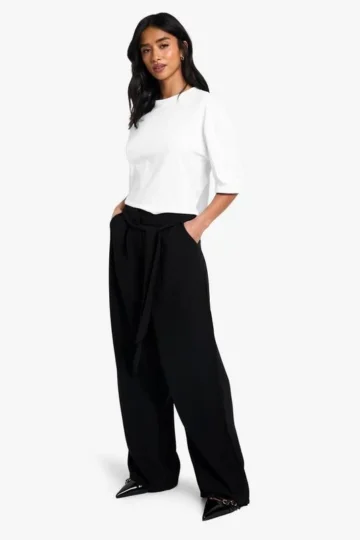 BOOHOO Petite Tie Belt Detail Wide Leg Trousers