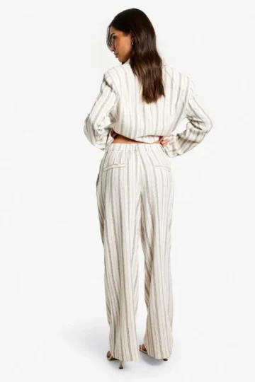 BOOHOO Petite Stripe Linen Look Wide Leg Trouser